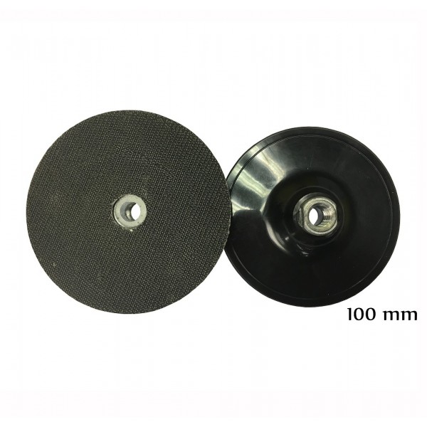 Plato en diámetro 100mm para radial. Su soporte permite la fijación de discos de lija velcro. Su orificio central permite la salida de agua.