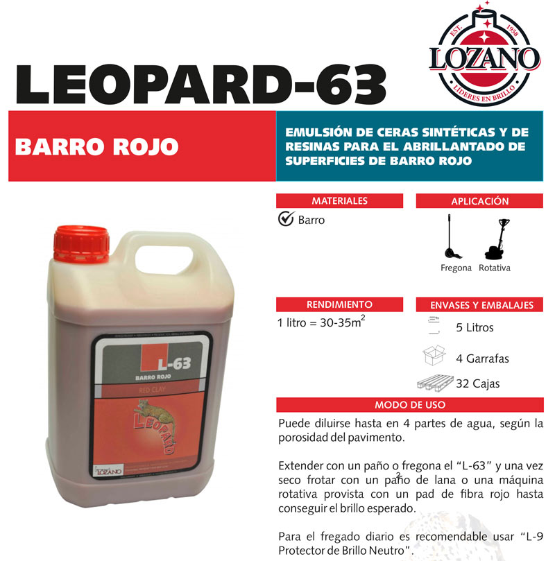 Emulsión de ceras sintéticas y resinas, formulada especialmente para el mantenimiento de barro rojo. Se trata de un producto de gran resistencia al tráfico intenso.