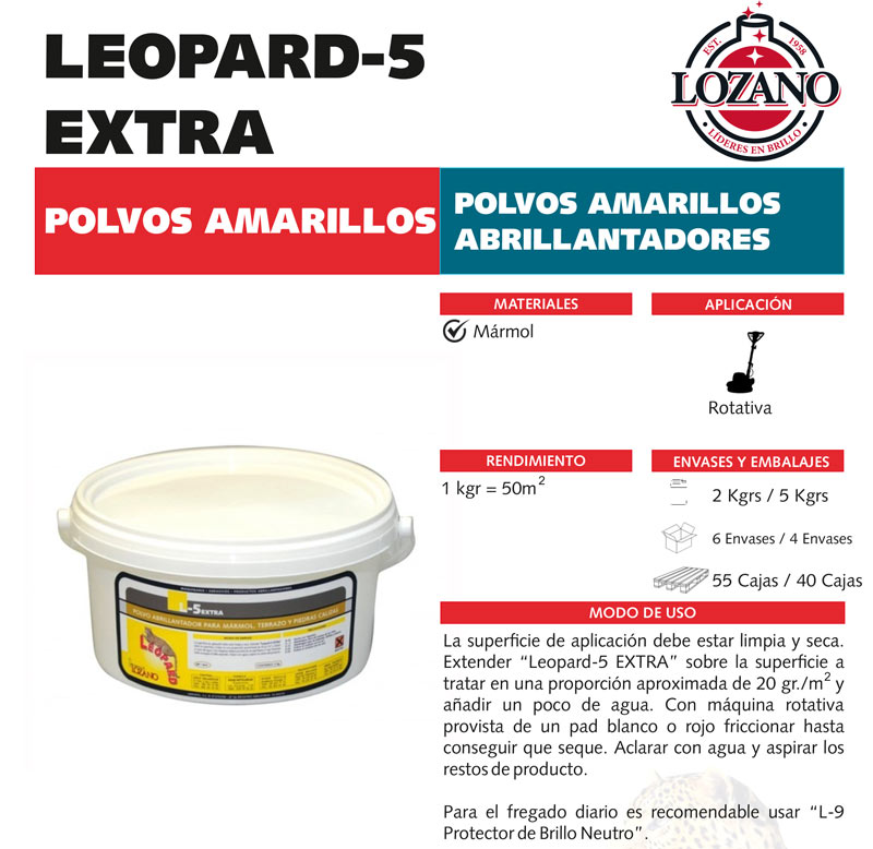 Comercial Lozano, fabricante de productos químicos de limpieza y maquinaria destinados al tratamiento de pavimentos, especializarnos en la fabricación de CRISTALIZADORES DE SUELOS Y ABRILLANTADORES. Actualmente, nuestros productos se comercializan bajo la marca “PRODUCTOS LEOPARD”.